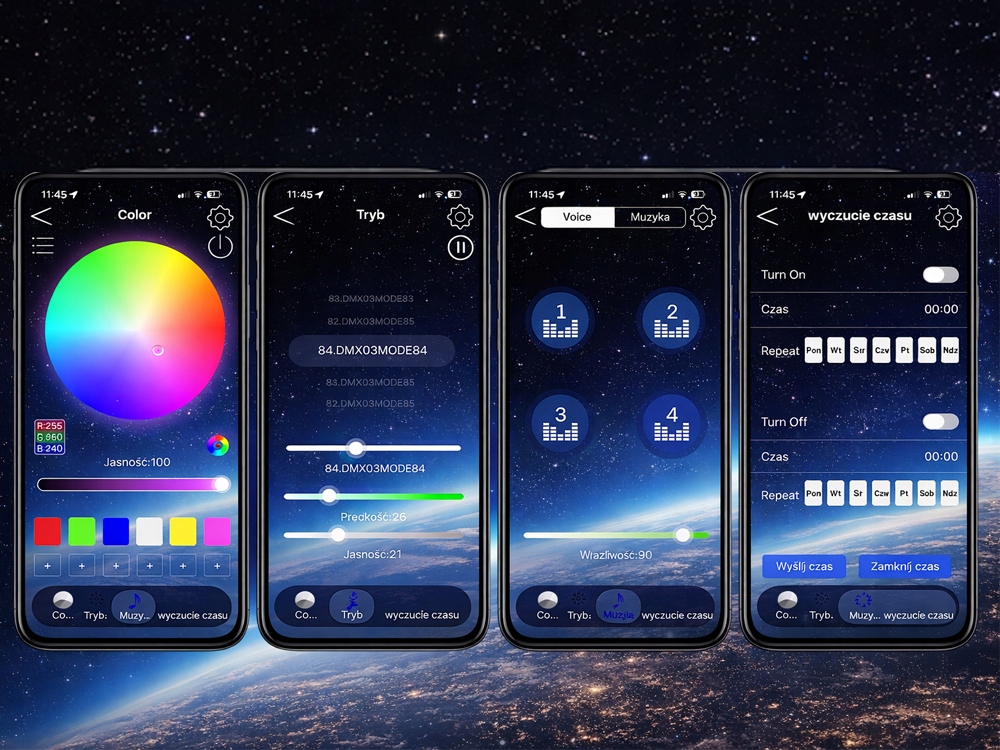 A távirányító hangra reagáló módot is kínál – a LED-szalag a zenével összhangban változtatja a színeket és a világítás sebességét, feltűnő és modern hangulatot teremtve.