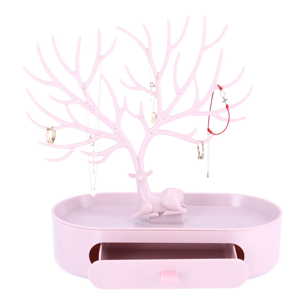 Agancs ékszertároló állvány-RózsaszínAz állvány gyönyörűen látható lesz, mint maga a dekoráció, és kiegészítésként is használható. Talán hasznos lenne olyan ékszereket készíteni, mint a karkötők vagy gyűrűk. A finom szín tökéletes lesz bármilyen belső térben és annak használatában. Ezen kívül van egy kis fiókja, amelybe több külső tárgy is elfér.