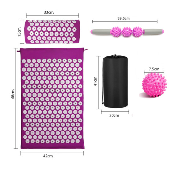 Az akupresszúrás szett tartalmaz egy szöges szőnyeget, egy masszázspárnát, egy kényelmes huzatot a könnyű szállításhoz és tároláshoz, valamint egy masszázsgolyókkal ellátott hengert. Nem mindenki engedheti meg magának a rendszeres látogatást egy szakemberhez, ezért a készletünknek köszönhetően otthon is végezhet ilyen masszázst saját maga.