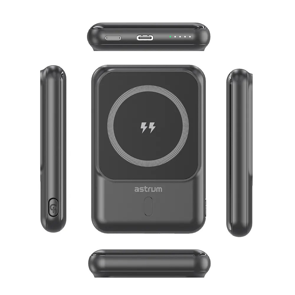 Astrum PB050 5000mAh fekete gyorstöltő power bank vezeték nélküli töltéssel, 2X Type-C (2.1A), li-polymer cellákkal