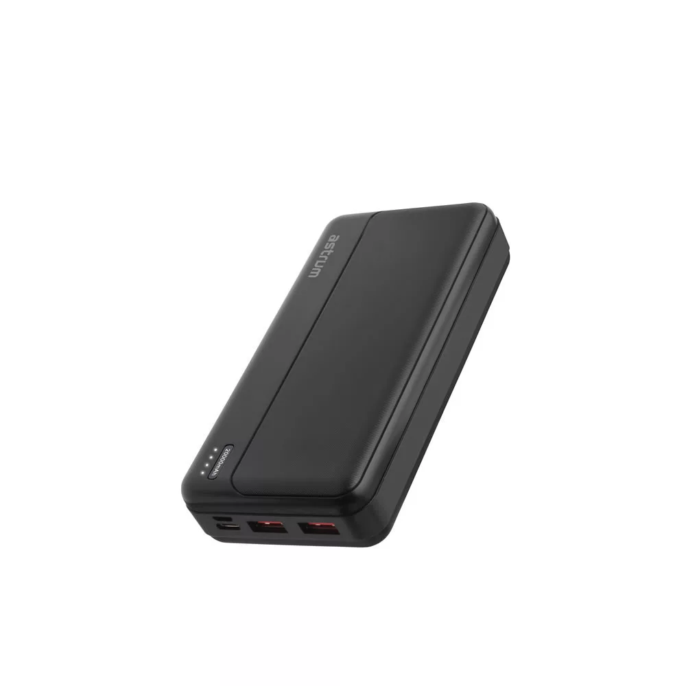 Astrum PB630 20000mAh fekete gyorstöltő PD 3.0, QC 4.0 power bank 2X USB-A (2.4A), 1X Type-C (22,5W), li-polymer cellákkal