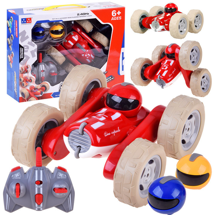 A kaszkadőr olyan stílusban van fenntartva, amely egy autóra emlékeztet, egyenesen a versenypályáról, a kerekek kivételével. Két független tengelyre vannak felszerelve, többek között megkönnyítve a kis akadályokat vagy a falról való visszapattanást. Az autó négykerék-meghajtással rendelkezik. A széles gumi gumiabroncsok a manőverek során tapadást biztosítanak. A készlet három sisakot tartalmaz a "sofőrök számára", különböző színű. A sisak megfelelő helyre helyezése elindítja a járművet. A játékautó testét a sisak kiválasztott színének megfelelően világítják meg, amely vezetés közben jól néz ki. A készlet egy távirányítót tartalmaz, amely teljes irányítást biztosít az autó felett. A távirányítót úgy aktiválják, hogy a gombot ki van mozgatva a helyzetbe. A pilóta automatikusan csatlakozik az autóhoz. A sisak megváltoztatása után a távirányítót vissza kell állítani. A pilótahoz csatlakoztatott, de egy percig nem hajtott kaszkadőr, amely helyhez kötött, majd alszik. A vezetést viszont a motor indítása, a motor működése és a gyorsulás hangja kíséri.