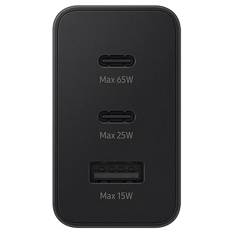 BLISZTERES Samsung Trio EP-T6530NBEGEU gyári hálózati fekete gyorstöltő 3A 65W (2x Type-C / 1x USB)