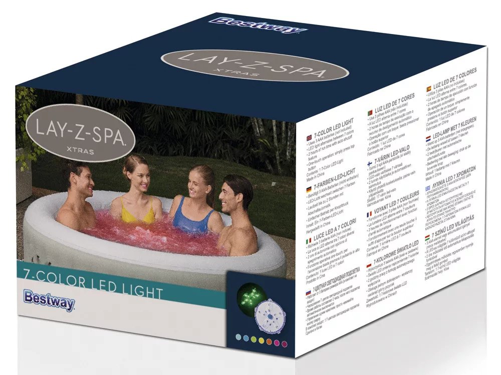 The LED lamp will be a great addition that will diversify a romantic evening at your home Lay-Z-Spa. It is easy to use and has seven color modes. Colors are switched using the top button. The lamp is completely safe and waterproof, powered by 3xAAA batteries.