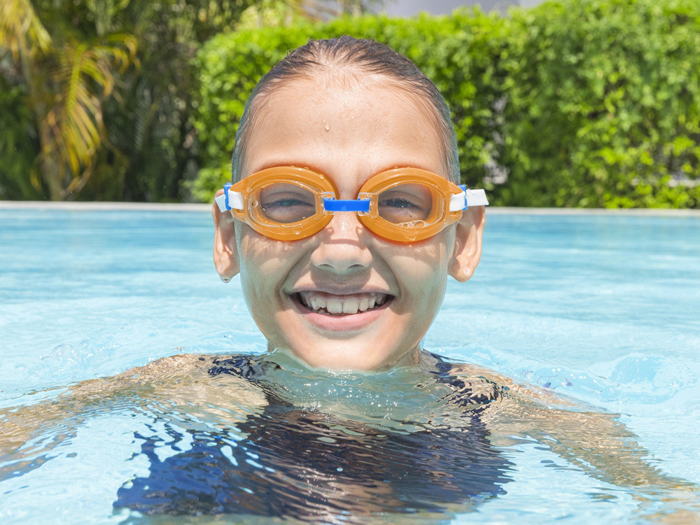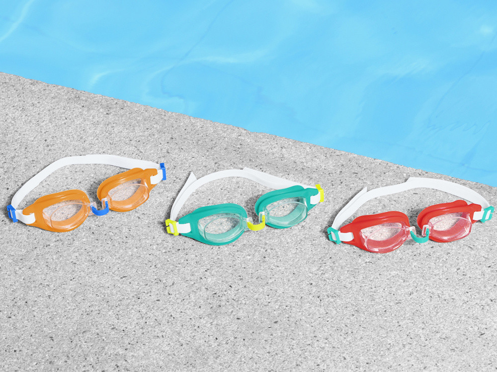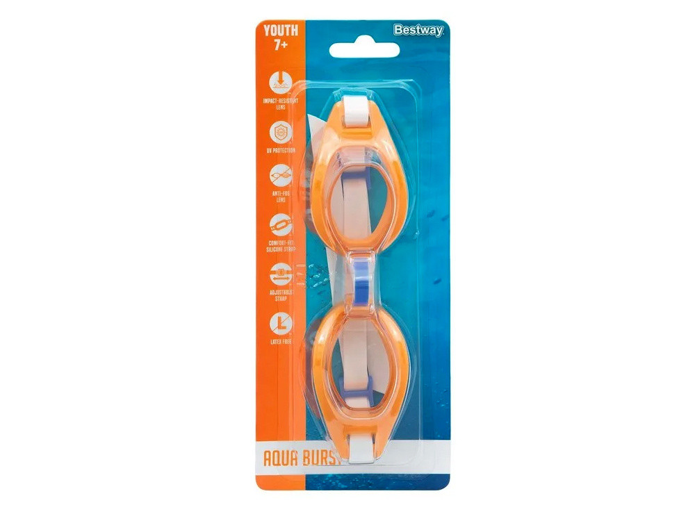A Bestway® Aqua Burst Goggles minden bizonnyal bebizonyítják magukat az első úszási órák során. A legfiatalabb gyermekek kényelme és biztonsága érdekében hozták létre őket az úszómedence tevékenységei során. A Goggle lencsék tartós polikarbonát anyagból készülnek, így hatással szemben állnak, és képesek állni a gyerekekkel szemben, akár ugrik, búvárkodás vagy fröccsenés. Ezenkívül a szemüvegek védik az UV -sugárzás ellen, megvédve a gyermek szemét a nap kemény sugaraitól, miközben belemerülnek és belemerülnek a vízbe. Az állítható orrhíd és a szilikon heveder lehetővé teszi a szemüveg egyéni beállítását a felhasználó fejéhez. A szemüveg 7 éves gyermekek számára készült.