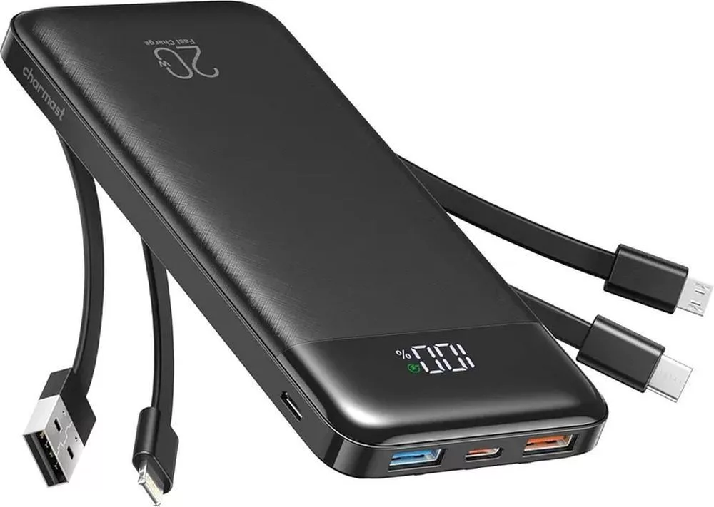 A CHARMAST W1148 10000 mAh POWERBANK 4 beépített kábellel egy kompakt, hordozható töltő, amely 6 kimenettel, 3 töltési móddal és digitális LED kijelzővel rendelkezik a töltöttségi szint pontos szabályozásához. A külső akkumulátor három beépített kimeneti kábellel van felszerelve: Micro USB , USB -C és Lightning, amelyek lehetővé teszik a legtöbb okostelefon és táblagép töltését további kábelek nélkül. Szabványos USB- portokkal is rendelkezik , amelyek lehetővé teszik több eszköz egyidejű töltését. A készülék 6 kimenettel és 3 féle módon töltheti a külső akkumulátort – a beépített USB -A kábelen, Micro USB bemeneten vagy USB -C bemeneten keresztül . Ez a praktikus megoldás növeli a használat kényelmét és kiküszöböli az összegubancolódott kábelek problémáját. A digitális LED kijelző pontosan mutatja a töltöttségi szintet (0-100%), így pontosan nyomon követheted a fennmaradó energiát. Az Smart E 3.0 technológia automatikusan felismeri a csatlakoztatott eszközöket, és a maximális hatékonyság érdekében beállítja a töltési paramétereket. A 10 000 mAh-s kapacitás lehetővé teszi az olyan okostelefonok többszöri töltését, mint az iPhone 11, iPhone 11 Pro, iPhone 11 Pro Max vagy a Huawei P20, így alkalmas megoldást kínál a mindennapi használatra és utazáshoz. Specifikáció:Márka: CharmastModell: W1148Kapacitás: 10000 mAhAkkumulátor típusa: lítium-polimerBeépített kábelek: Lightning, Micro USB , USB -CPortok: USB -A, USB -C, Micro USBKimenetek száma: 6Bemenetek száma: 3Kijelző: LED (digitális)Ház anyaga: műanyag