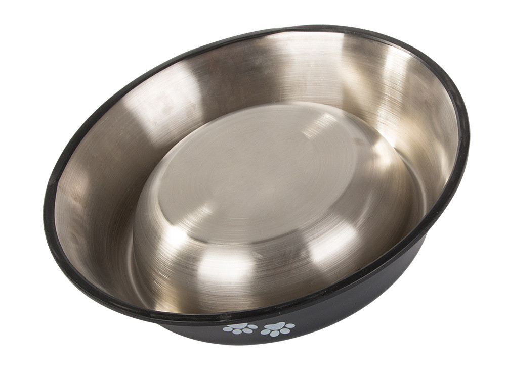 CSÚSZÁSGÁTLÓ FÉM KUTYÁTÁL NAGY 1LT Kialakításának köszönhetően a fémtál ideális száraz és nedves ételhez. Könnyen tisztán tartható.Rozsdamentes acélból készült, csúszásmentes gumival van ellátva, amely megakadályozza, hogy a tál elmozduljon az étellel. Robusztus felépítésének köszönhetően ellenáll a sérüléseknek, hosszú élettartamot biztosítva. Az egyedi mancs minták adják a tál varázsát, így gyönyörű kiegészítője a belső térnek.MŰSZAKI ADATOK:✅ Termékkód: 19396✅ Csúszásmentes gumi a teljes kerületen✅ Könnyen tisztítható✅ Rozsdamentes acélból készült✅ Tartós kivitel ✅ Univerzális✅ Űrtartalom: 1L✅ A tál felső átmérője: 20cm✅ Talp átmérője: 29cm✅ Magasság: 7cm✅ Szín: fekete és kék A SZETT TARTALMAZ:☑️ Gyári új fémtál