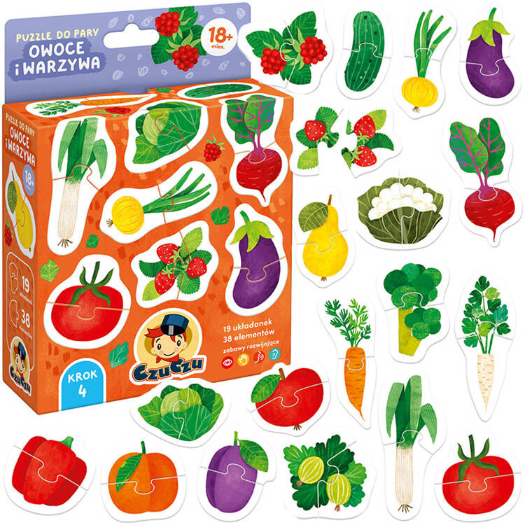 Mint tudják, a gyümölcsök és zöldségek mindannyiunk életében fontos szerepet töltenek be. A legfiatalabbak, egy évesnél idősebbek számára készült puzzle. Az érdekes és színes illusztrációk mindenképpen felkeltik a figyelmüket. Nézze meg, ismeri-e őket a kicsi, és össze tudja-e kötni őket a szétszórt rejtvényből? A felek keresése és összekapcsolása megtanítja őket a szem-kéz koordináció javítására. A rejtvények manuális készségeket és megfigyelést is tanítanak. Remek készlet a legkisebbeknek.