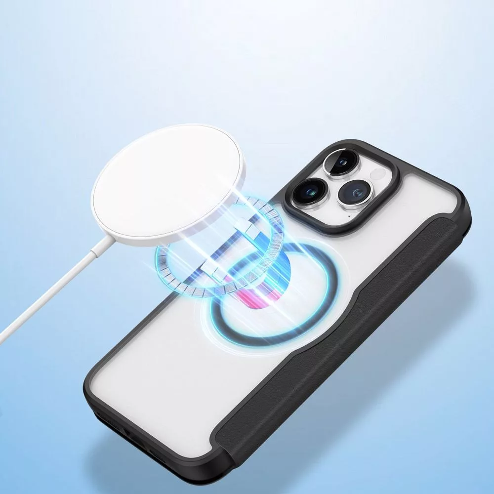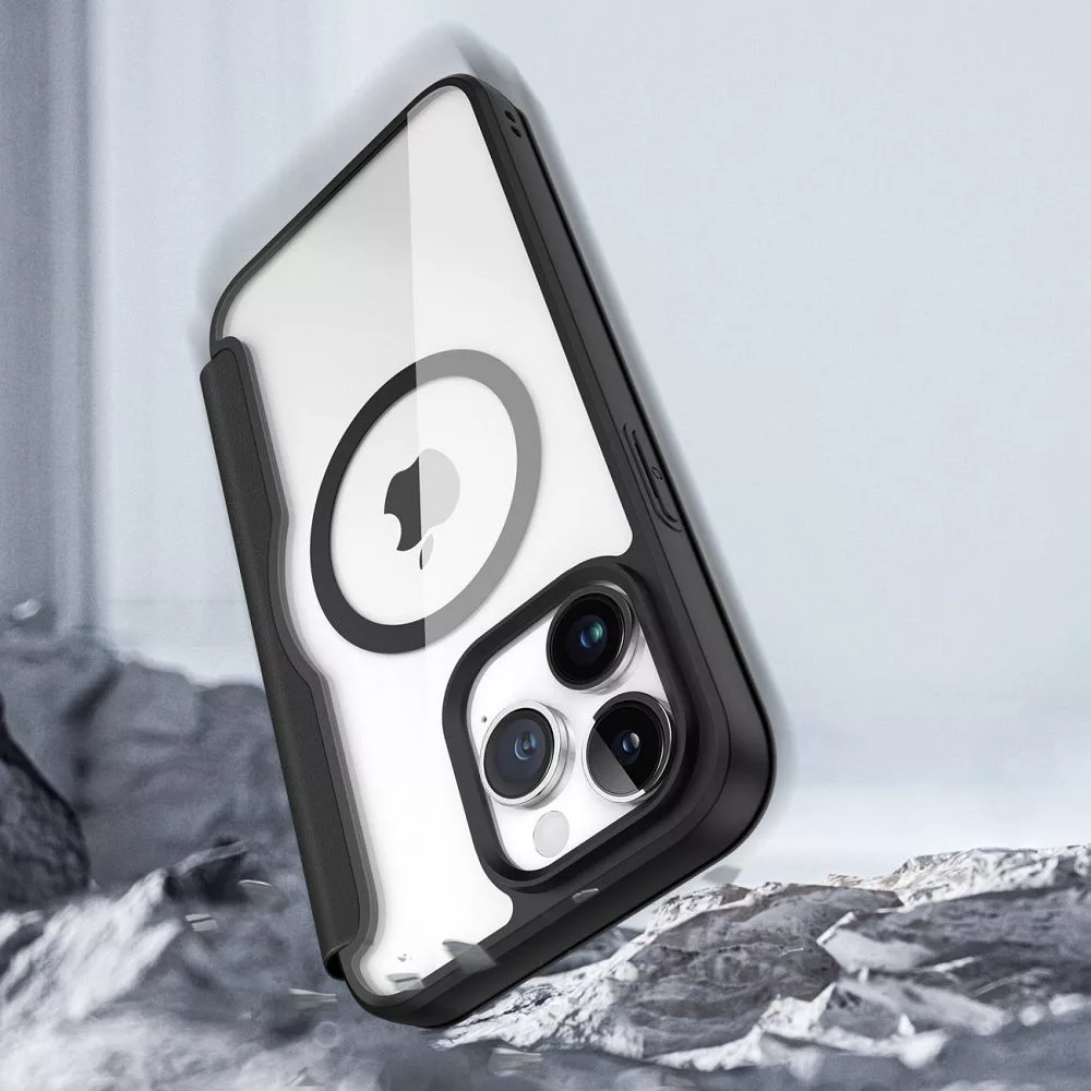 A Dux Ducis Skin X Pro egy mágneses, öko-bőrből készült, MagSafe technológiával kompatibilis kihajtható tok. Ez a stílusos és funkcionális tok minden oldalról hatékonyan védi okostelefonját, a belsejében pedig praktikus rekeszek találhatók hitelkártyák és dokumentumok számára. Továbbá az integrált gombok és a precíz kivágások könnyű hozzáférést biztosítanak az összes porthoz, a mágneses zár pedig megakadályozza a képernyő véletlen kinyílását. A Dux Ducis Skin X Pro flip tok modern dizájnja bármilyen helyzethez tökéletes. Univerzális, elegáns kialakítása fokozza okostelefonod esztétikáját, miközben egyedi karaktert kölcsönöz neki. A MagSafe kompatibilitásnak köszönhetően a tok lehetővé teszi a telefon vezeték nélküli töltését anélkül, hogy ki kellene venni. Ezenkívül mágneses pénztárcát vagy külső akkumulátort is csatlakoztathatsz hozzá, így a mindennapi használat sokkal könnyebb. A Dux Ducis Skin X Pro tokot a legnagyobb gondossággal készítették. Ökobőr anyaga puha tapintású, míg a belső TPU borítás megerősíti a szerkezetét és védi az okostelefont a sérülésektől. A tok sima felülete ellenáll az ujjlenyomatoknak és az olajfoltoknak, így mindig kifogástalanul néz ki. A tok jól átgondolt kialakítása praktikus rekeszeket is tartalmaz hitelkártyák, dokumentumok és bankjegyek számára. A fedél belsejében találhatóak, így biztonságosan tárolhatod a legfontosabb tárgyaidat, kéznél. A tokba épített gombok megakadályozzák a homok és a szennyeződés bejutását a belsejébe, míg a precíz kivágások könnyű hozzáférést biztosítanak az összes porthoz. Ezenkívül a fedél mágneses záródása biztosítja, hogy okostelefonod képernyője mindig biztonságban legyen, és ne kerüljön véletlenül sem a kezébe. Specifikáció:Modell: Dux Ducis Skin X Pro Anyag: ekológikus bőr + PU, TPU + PC + PETKompatibilitás: iPhone (MagSafe)További jellemzők: kártyatartó zseb, mágneses zár