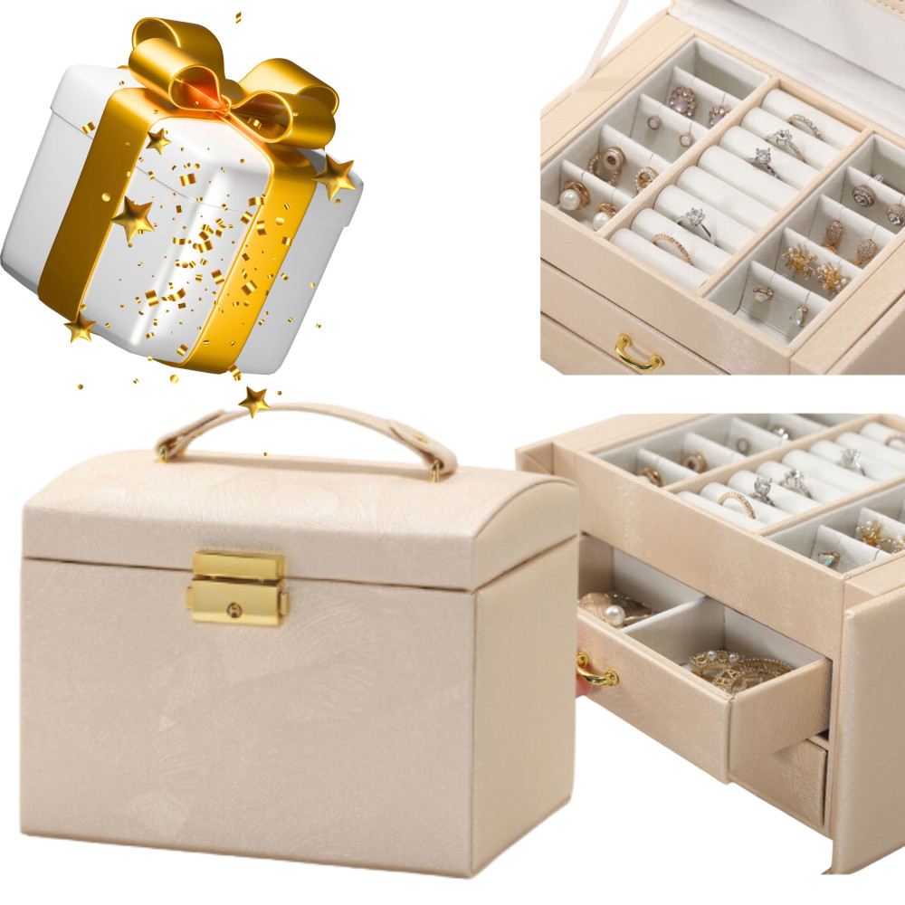 Többszintű ékszerdoboz - arany Minden nő személyes tárgyai között fontos szerepet töltenek be az ékszerek. A többszintes ékszerdoboz pótolhatatlan és megbízható termék értékei tárolásában. A különálló rekeszek és fiókok tökéletes tárolási feltételeket biztosítanak fülbevalók, karkötők, órák, láncok, szemüvegek és egyéb értékek tárolására. Az ékszerdoboz kiküszöböli az összefonódó láncok, horzsolások és karcolások problémáját. A puha bélés megvédi az értékes ékszereket a karcolásoktól. Az ékszerdobozban egy nagy, levehető tükör található, amely használható ékszerfelpróbáláskor és sminkeléskor is. Koporsónkat elegáns, finom beállítás jellemzi, minden apró részletre odafigyelve. Stílusa tökéletesen illeszkedik bármilyen enteriőr dekorációjába, gyönyörűen mutat a fésülködőasztalon, az asztalon, a hálószobában, az öltözőben a komódon vagy a gyerekszobában. Termékjellemzők: az ékszerei töröttek, rendezettek és láthatóak lesznek, megvédi az ékszereket a karcolásoktól és összegabalyodástól, sok rekesszel, fiókkal, tükörrel rendelkezik, divatos, modern dizájn, az ékszerdobozt magas funkcionalitás, vonzó megjelenés és jelentős tartósság, a közepe finom anyaggal bélelt,