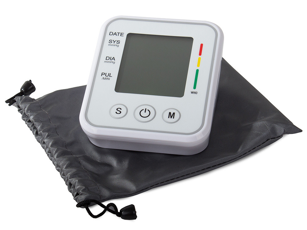 LCD CASE ELEKTRONIKUS FELKAR VÉRNYOMÁS ELLENŐRZŐ A felkar vérnyomásmérő nélkülözhetetlen eszköz a helyes diasztolés és szisztolés vérnyomás és pulzus ellenőrzéséhez. Nem igényel sztetoszkópot, így könnyen használható. A házon jelölések találhatók, amelyek osztályozzák a mért nyomást az Egészségügyi Világszervezet (WHO) irányelvei szerint. Ez lehetővé teszi a kapott mérési eredmény gyors kezdeti önértékelését.A készülék nagyméretű, funkcionális LCD-kijelzővel rendelkezik. A mérés befejeztével a képernyőn egyszerre jelenik meg a szisztolés nyomásérték, a diasztolés nyomásérték és a pulzusszám. egy funkcionális tasakot tartalmaz, amely megvédi a készüléket a szennyeződésektől és a sérülésektől. A vérnyomásmérő csúszásgátló talppal rendelkezik.HASZNÁLATI HOGYAN:Mérés előtt lazítson és nyugodjon meg.Helyezze fel a karszalagot a karjára tenyérrel felfelé, párhuzamosan a szívével Tartsa a kivezető csövet párhuzamosan az artériával. Tekerje szorosan a szalagot a kar köré. , rögzítse tépőzárral Hagyjon helyet egy ujjnyi vastagságig Tartsa a szalagot párhuzamosan a kezével Nyomja meg a be-/kikapcsoló gombot, lazítson és indítsa el a méréstAz eredmény 40 másodperc múlva jelenik meg