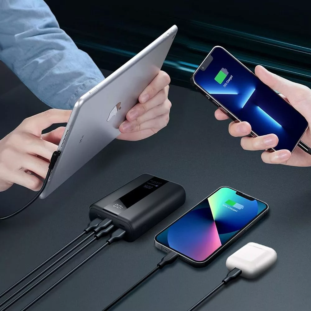 Három USB-A és egy USB-C porttal felszerelve akár négy eszköz egyidejű töltését is lehetővé teszi, így tökéletes társ azok számára, akiknek útközben vagy a mindennapi használat során megbízható áramforrásra van szükségük.