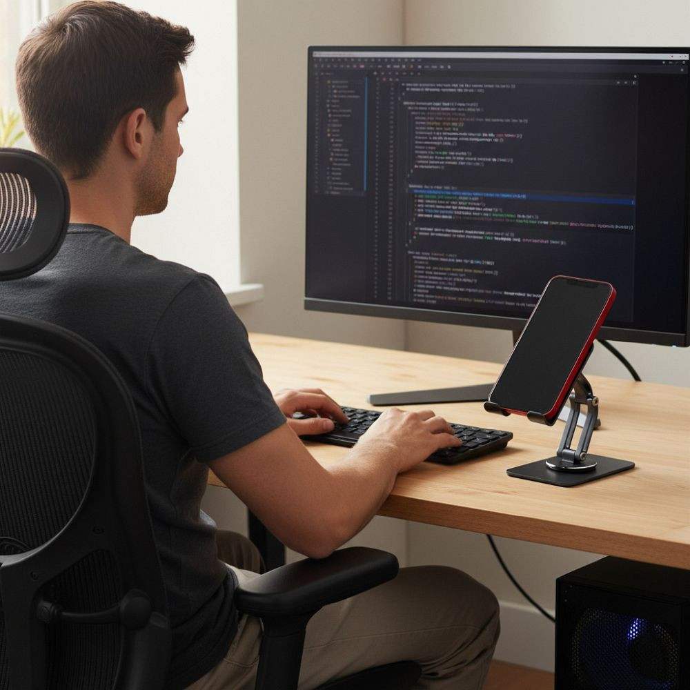 A Forcell F-Grip Fold Stand 2 egy összecsukható és ultrakönnyű asztali tartó okostelefonokhoz és kisebb táblagépekhez, tartós alumíniumból készült. Kompakt kialakításának, állítható dőlésszögének és robusztus konstrukciójának köszönhetően funkcionális és sokoldalú kiegészítő irodai, otthoni vagy mobil használatra. StabilitásA tartó mindössze 138 g súlyú, de az alumínium háznak köszönhetően még nehezebb – akár 800 g – telefonmodellek esetén is stabilitást biztosít. Az alján elhelyezett csúszásgátló párnák garantálják a tapadást az asztallapon, és megakadályozzák az állvány elcsúszását használat közben. A Fold Stand 2 dőlésszögének beállítása és forgatható alapjalehetővé teszi a precíz szögbeállítást, növelve a kényelmet videobeszélgetés, tartalomnézés vagy alkalmazásokkal való munka közben. Ezenkívül a tartó egy forgóelemre van szerelve, amely lehetővé teszi a teljes szerkezet sima 360°-os elforgatását anélkül, hogy az állványt fel kellene emelni vagy mozgatni. A zsanérok feszességének beállításához egy imbuszkulcs is tartozik hozzá. Összecsukható és hordozható.Összecsukható kialakításának köszönhetően a tartó könnyen tárolható és szállítható – elfér zsebben, hátizsákban vagy laptoptáskában. Tökéletes kiegészítője egy mobil munkaállomásnak. Műszaki adatok:Modell : Összecsukható állvány 2Tömeg : 85 gTeherbírás : 800 gMéretek : 112 × 73 × 31,5 mmAnyag : Alumínium