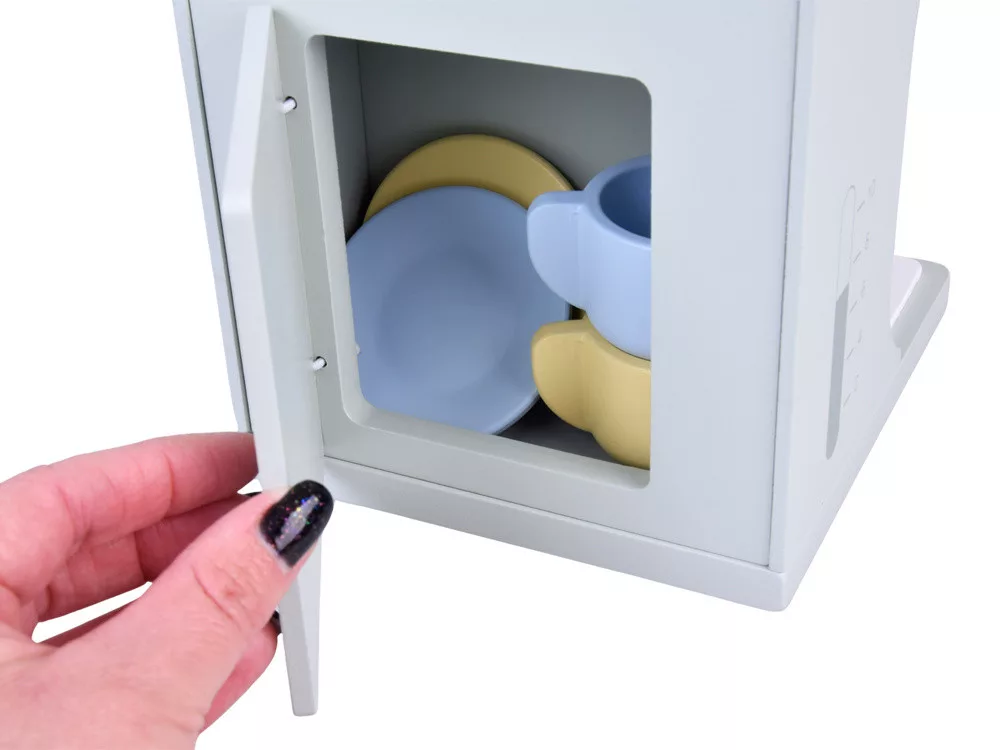 Fa kávéfőző gyerekeknek + kiegészítők – stílus, minőség és kreatív játék!Ajándékozzon gyermekének egy olyan játékot, amely egyenesen az aromás kávék és a hangulatos otthoni kávézók világába repíti! Ez az elegáns, menta színű dizájnú, fából készült kávéfőző tökéletes kiegészítője lehet bármely gyermek konyhájának, szobájának vagy játszósarkának. Gondosan, minden részletre odafigyelve elkészített, minőségével és esztétikájával lenyűgöz, míg a gazdag kiegészítőkészlet órákig tartó fantáziadús, lebilincselő játékot biztosít.A játék kivételes érzékszervi élményeket kínál a működő darálónak, a gomboknak, gomboknak és a kihúzható tejhabosítónak köszönhetően. Mindezek az elemek még realisztikusabbá és magával ragadóbbá teszik a játékot. További előny a beépített tárolórekesz, ahová a kiegészítők szépen eltehetők a játék után.Elegáns és tartós – tartósra tervezveA kávéfőző teljes egészében tömör fából készült, így stabil, sérülésálló és biztonságos a gyermekek számára. A természetes fa, a lágy menta és a fehér színek kombinációja stílusos megjelenést kölcsönöz neki, amely tökéletesen illeszkedik bármilyen enteriőrbe. A lekerekített élek és a nem mérgező festékek biztosítják a biztonságos játékot minden nap.Komplett készlet egy kis baristánakA csomag mindent tartalmaz, ami egy bájos gyerekkávézó létrehozásához szükséges: