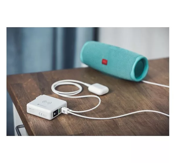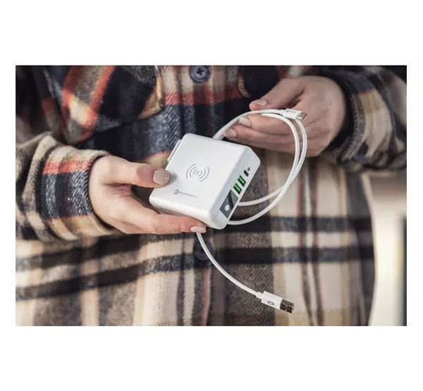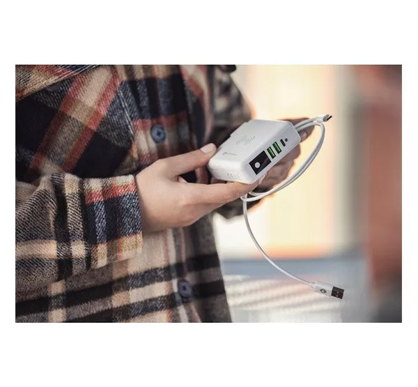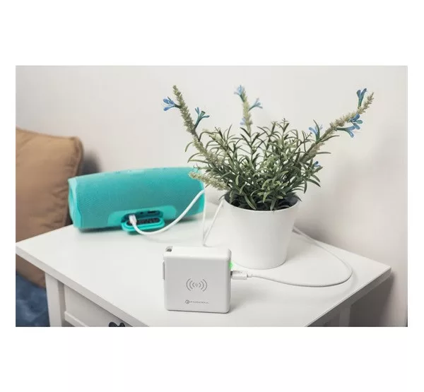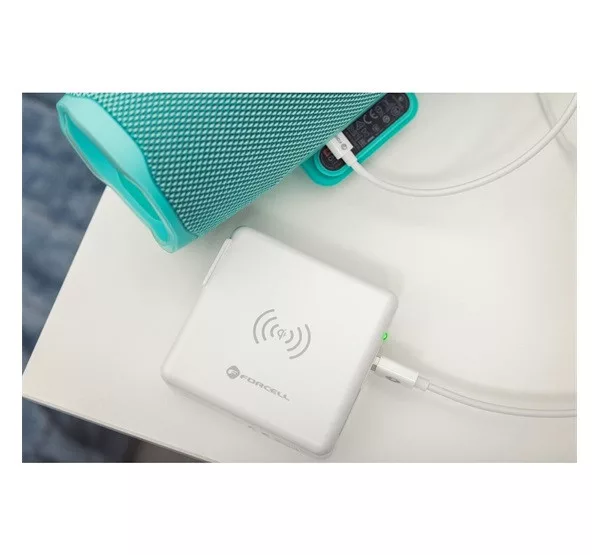 Forcell 4in1 univerzális töltő, külső akkumulátor / power bank vezeték nélküli töltéssel, USB/USB-C, (15W/8000mAh) fehér
