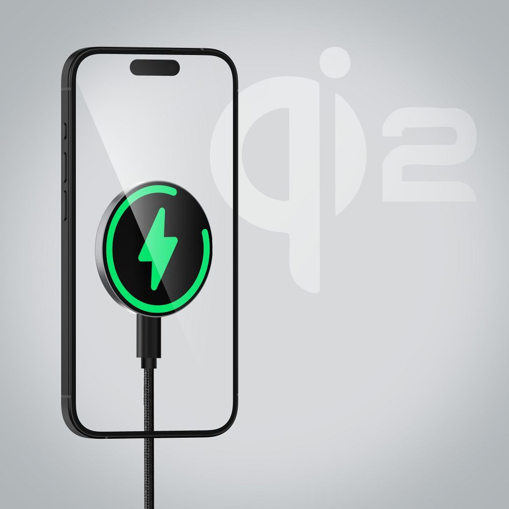 A Forcell F-Energy Smart Charge egy 15 W-os vezeték nélküli töltő, amely támogatja a Qi2 szabványt, így gyors, stabil és hatékony töltést biztosít. A MagSafe támogatásnak köszönhetően az eszköz kompatibilis az iPhone-okkal, és támogatja a modern, induktív töltési technológiával felszerelt Samsung, Xiaomi és Huawei okostelefonokat is. Qi2 technológia: