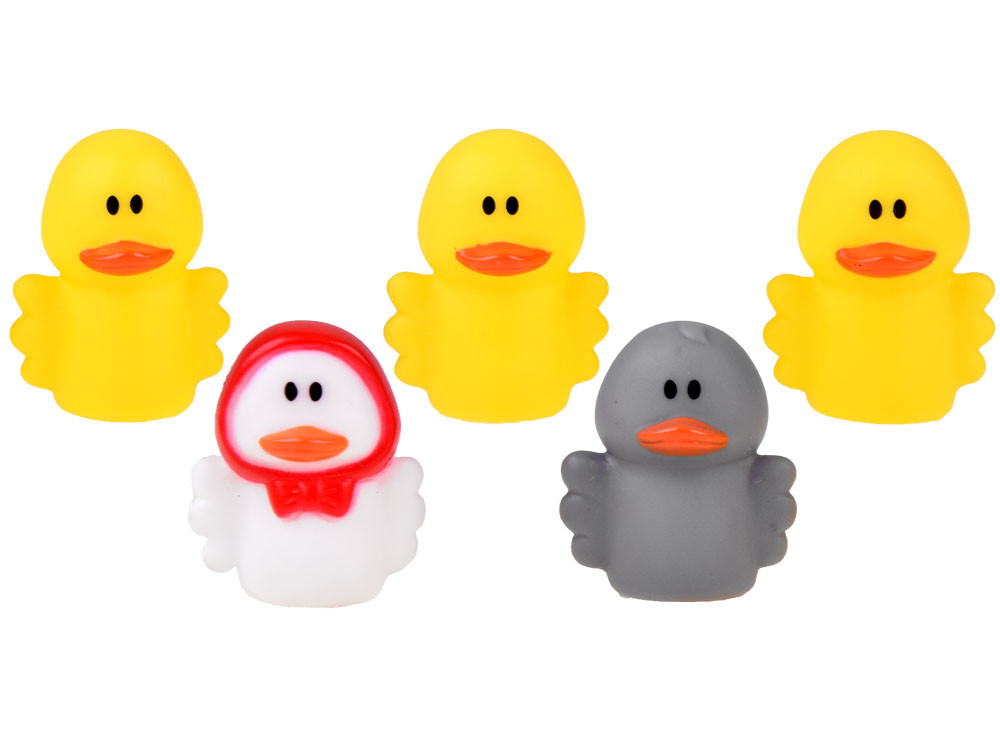 A kacsafigurák nagyszerűek lesznek, ha elolvasnak egy mese a csúnya kiskacsaról, annak a báboknak köszönhetően, amelyeket a mese jeleneteire képes lesz játszani. A gumi kacsákkal való játék jól fog működni, miközben egy könyvet olvas, miközben a fürdőben játszik, a homokozóban. Egy kis sárga kacsák, egy szürke és egy fehér egy piros sálban, nagyszerű, kreatív szórakozást eredményez.