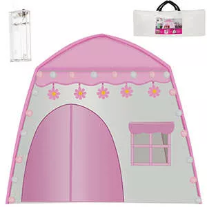 LÁMPÁK - a sátorhoz 2 x AA elemmel működő "vattagolyós" lámpák járnak (nem tartozék), így a sátoron kívül és belül is használhatod őket. A lámpák színe rózsaszín és fehér. Az egész 20 lámpából áll. A lámpákkal ellátott kötél 2,8 m hosszú.