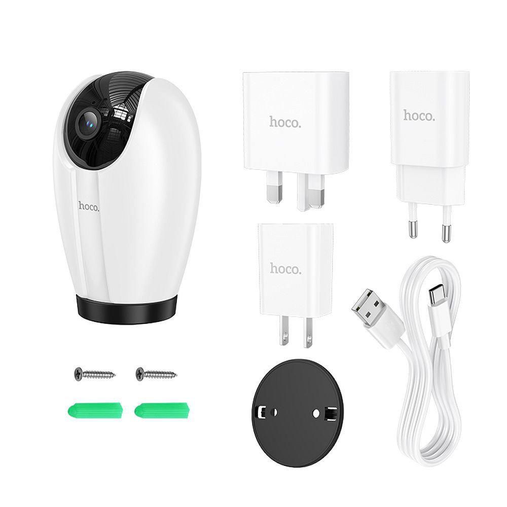 A Hoco D6 egy funkcionális beltéri kamera, amely a modern dizájnt fejlett megfigyelési funkciókkal ötvözi. Full HD felbontással és egyszerű okostelefon-hozzáféréssel bárhol megfigyelheti belső tereit. Főbb jellemzők:Full HD felbontás – A tiszta és részletes felvételek lehetővé teszik a tér hatékony megfigyelését.Mozgásérzékelés – Az érzékelt mozgásról szóló automatikus értesítések fokozott biztonságot nyújtanak.Éjszakai mód – Az infravörös LED-ek még sötét helyiségekben is láthatóságot biztosítanak.Kétirányú kommunikáció – A beépített mikrofon és hangszóró valós idejű beszélgetéseket tesz lehetővé.Távoli elérés alkalmazáson keresztül – Figyelje otthonát vagy irodáját bárhonnan.Esztétikus, fehér kivitel – zökkenőmentesen illeszkedik bármilyen belső térbe. Műszaki paraméterek:Felbontás: Full HDFunkciók: mozgásérzékelés, éjszakai mód, kétirányú kommunikációCsatlakoztathatóság: Wi-FiAnyag: tartós műanyagSzín: fehér A Hoco D6 tökéletes megoldás azok számára, akik otthonuk vagy irodájuk biztonságáról gondoskodni szeretnének. Ez a megbízható és könnyen használható kamera valós idejű megfigyelést és reagálást tesz lehetővé a potenciális fenyegetésekre.