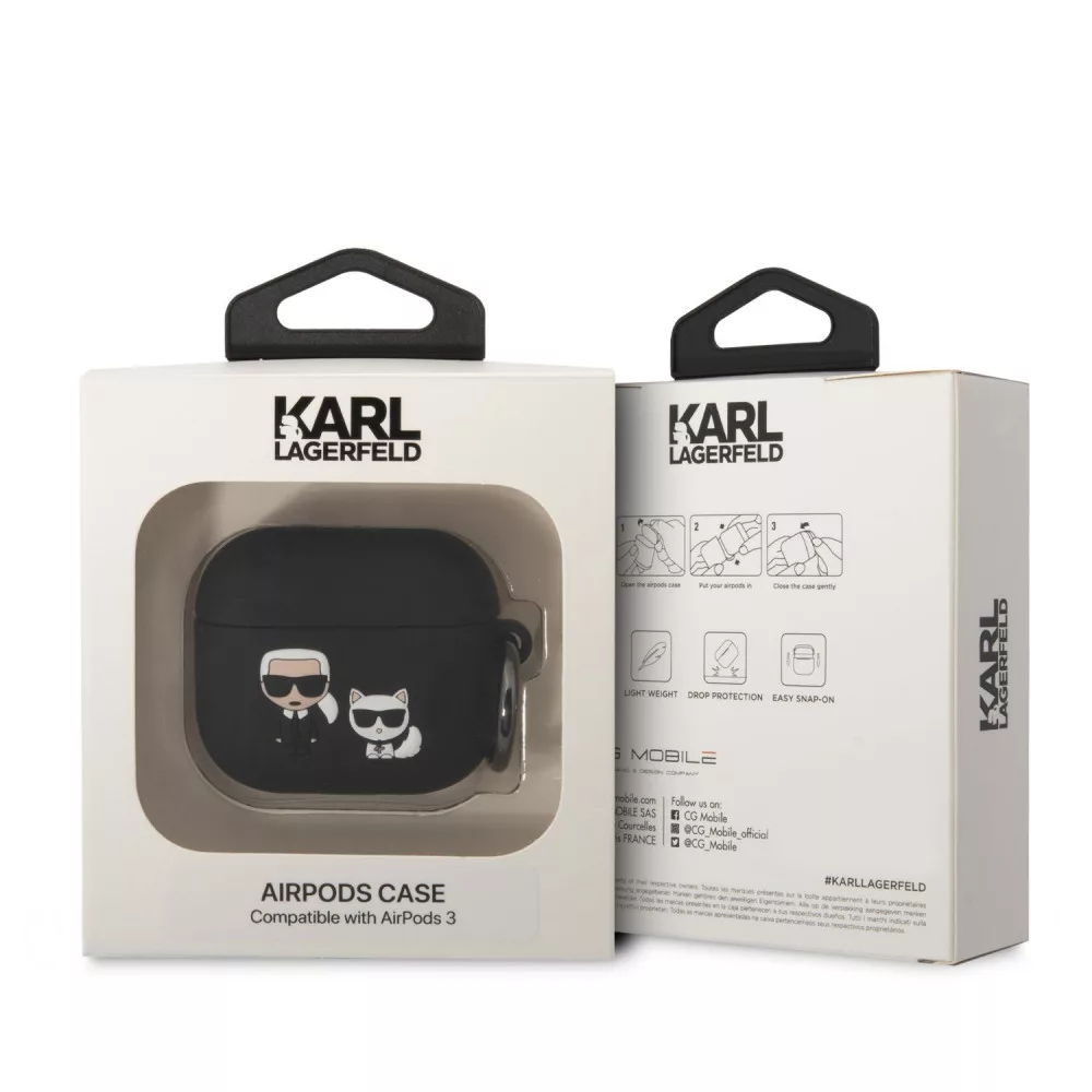 Karl Lagerfeld and Choupette Apple Airpods 3 szilikon tok fekete (KLACA3SILKCK)
