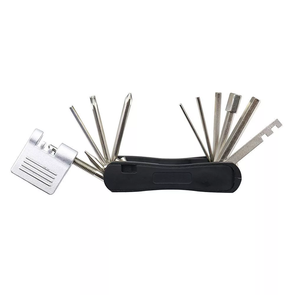 Az FSBRK -205-1 egy sokoldalú kerékpáros szerszám, amely 15 alapvető elemet tartalmaz a kerékpár kisebb javításaihoz és karbantartásához. Ez egy kompakt szett, amit érdemes mindig magaddal vinni – mind a mindennapi túrák, mind a hosszabb túrák során.A készlet tartalma:● Imbuszkulcsok: 2 mm, 2,5 mm, 3 mm, 4 mm, 5 mm, 6 mm és 8 mm – ideálisak a kerékpár csavarjainak és anyáinak beállításához.● Küllőkulcs: G14/15 – küllők meghúzásához vagy lazításához.● Laposfejű csavarhúzó – precíz nyomást igénylő munkákhoz.● Phillips PH1 csavarhúzó – elengedhetetlen a menetes csavarokkal ellátott alkatrészek kisebb javításaihoz.● T25 csavarhúzó – Torx kulcsot igénylő speciális alkalmazásokhoz.● Láncszegecs-eltávolító – megkönnyíti a láncalkatrészek eltávolítását és felszerelését.● Gumiszerelő emelők: 2 darab – hasznosak a gumiabroncsok le- és felszerelésekor.Miért válassza az FSBRK -205-1-et?● Átfogó: A 15 szerszámból álló készlet lehetővé teszi a legtöbb kisebb kerékpárjavítás elvégzését a terepen.● Kompakt méret: Minden alkatrész gondosan becsomagolva van a könnyű tárolás és szállítás érdekében.● Kiváló minőség: A szerszámok tartós anyagokból készülnek, garantálva a megbízhatóságot még intenzív használat esetén is.