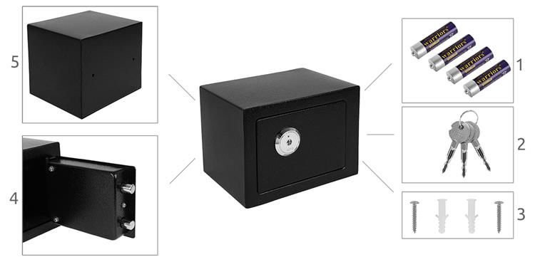 A szilárd teljesítmény garantálja, hogy rajtunk kívül senki sem férhet hozzá a tartalomhoz. A széf tartós és ellenálló a sérülésekkel szemben, és viszonylag nehéz. Ennek eredményeképpen csökken annak a kockázata, hogy a teljes rejtekhelyet ellopják, és észrevétlenül kiviszik az épületből vagy a szobából, ahol található. Az ajtó vastag reteszekkel való lezárása hatékonyan tölt be egy további biztonsági szerepet, megakadályozva azok feltörését. A széf lehetőséget biztosít minden fontos dolog, többek között pénz, ékszerek, dokumentumok vagy kisebb elektronikus berendezések, valamint érzékeny adatokat tartalmazó adathordozók tárolására. A széf belsejében lévő hely méretei lehetővé teszik, hogy akár A5 méretű lapok és mindenféle kis értékű, nagy értékű tárgy elférjen benne. A széf alja a mellékelt anyagpárnával borítható . Ez megvédi az ékszereket vagy más értéktárgyakat a véletlen sérülésektől vagy karcolásoktól. A széf egy kulccsal nyitható, a készletben 3 darabos készlet található. Ez lehetővé teszi, hogy egy kulcsot tartalékként tegyen be, a többit pedig két ember használhatja.