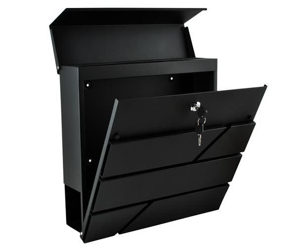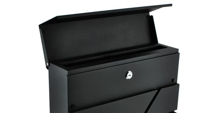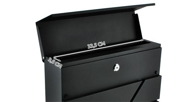 FEDEZETT LEVÉLBEÍRÁS / A4-ES FORMÁTUM – a postafiókban van egy beugró, amely speciális borítóval van rögzítve, amely megvédi a levelezést az időjárás viszontagságaitól. Még az A4-es betűk is elférnek a postaládában.