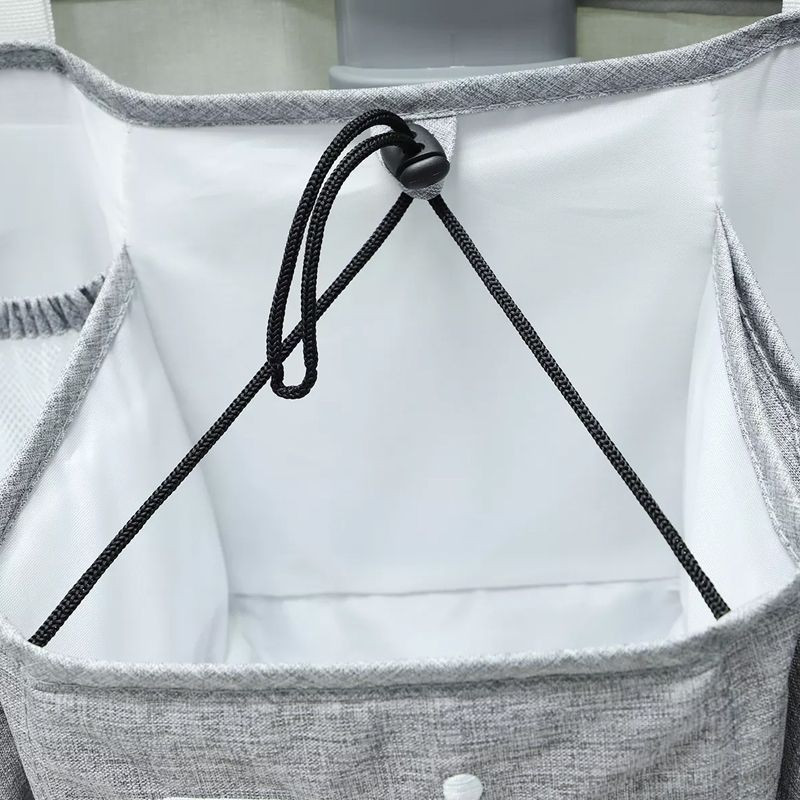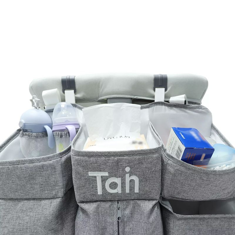 A multifunkcionális tároló babaápolási termékek, pelenkák, szövetek, ruhák, palackok, cumik és egyéb baba kiegészítők tárolására tervezték. Szervezőnknek köszönhetően minden szükséges termék kéznél lehet! A kiságy szervezője mindenképpen segít a rend fenntartásában a kiságy körül, és javítja a baba mindennapi gondozását.