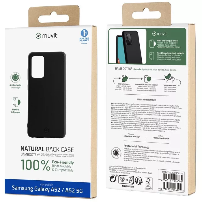 Muvit Samsung A525 / A526 Galaxy A52 4G / 5G ütésálló, bambuszrost alapú tok fekete