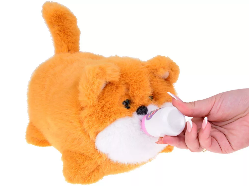 A készlet tartalmaz egy kis cumisüveget is, amelyet Pulpet szájához helyezhetsz, hogy „megetesd”. Etetés közben vicces szürcsölő hangokat hallasz, pont mint egy boldog kiskutya, aki élvezi a kedvenc jutalomfalatját.