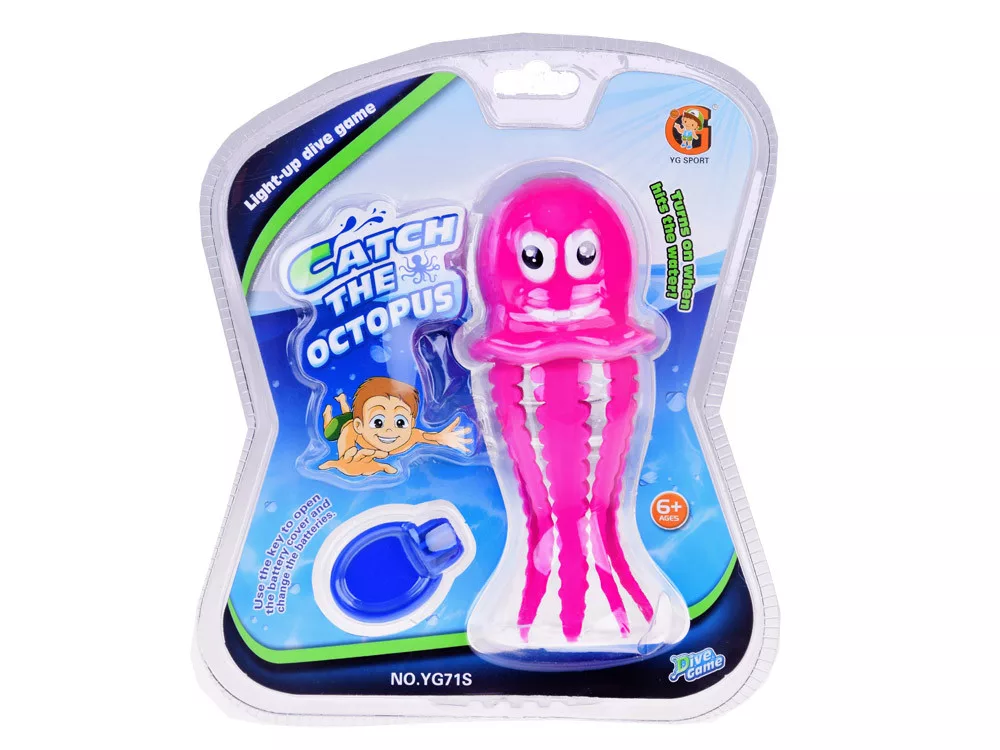 A búvárpolip tökéletes játék azoknak a gyerekeknek, akik felfedezik a vízi világ titkait. Csak dobja be a medencébe vagy a fürdőkádba, és búvárszemüveget viselő gyermeke könnyen megtalálja az alján. Kifejező színei felkeltik a figyelmet, víz alá kerülve pedig színes fénnyel kezd ragyogni, ami még inkább játékra ösztönöz.