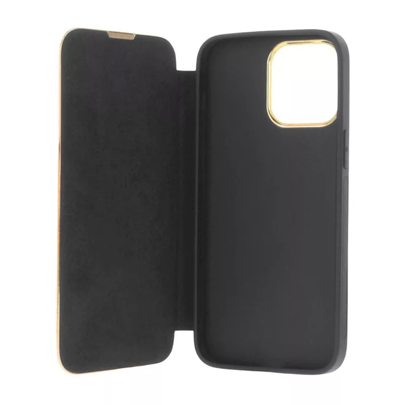 Smart Gold Frame MagSafe Apple iPhone 11 (6.1) 2019 oldalra nyíló könyv tok szilikon belsővel fekete