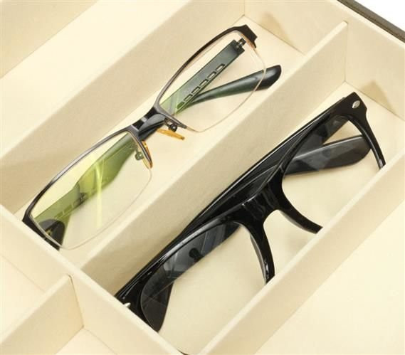 BIZTONSÁGOS BELSŐ - a szervező belseje puha anyaggal bélelt, a tárolt szemüvegek védve vannak a karcolásoktól. A rekeszeket magasabb falak választják el egymástól, ami megvédi a tárolt szemüvegeket a nem kívánt érintkezéstől, amely sérülést okozhat.