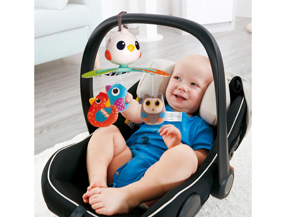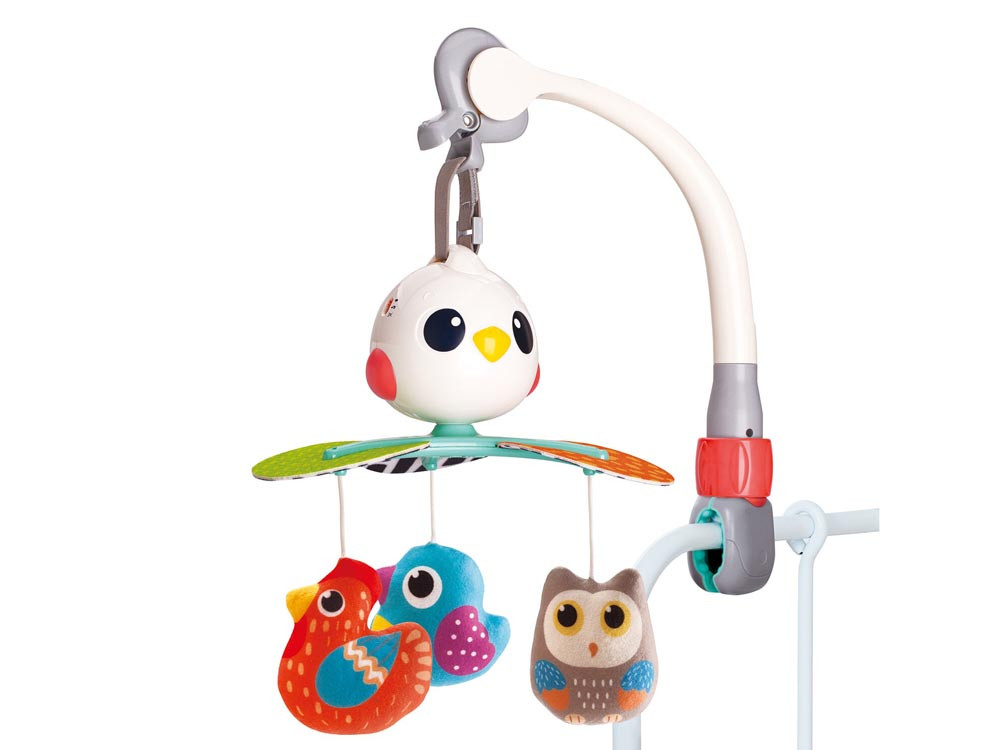 Erősségek:- Tökéletes méret egy babakocsihoz, autóüléshez vagy cot-szelíd, nyugtató dallamokhoz- könnyen összeállítható, univerzális klipje- 360 fokos forgás