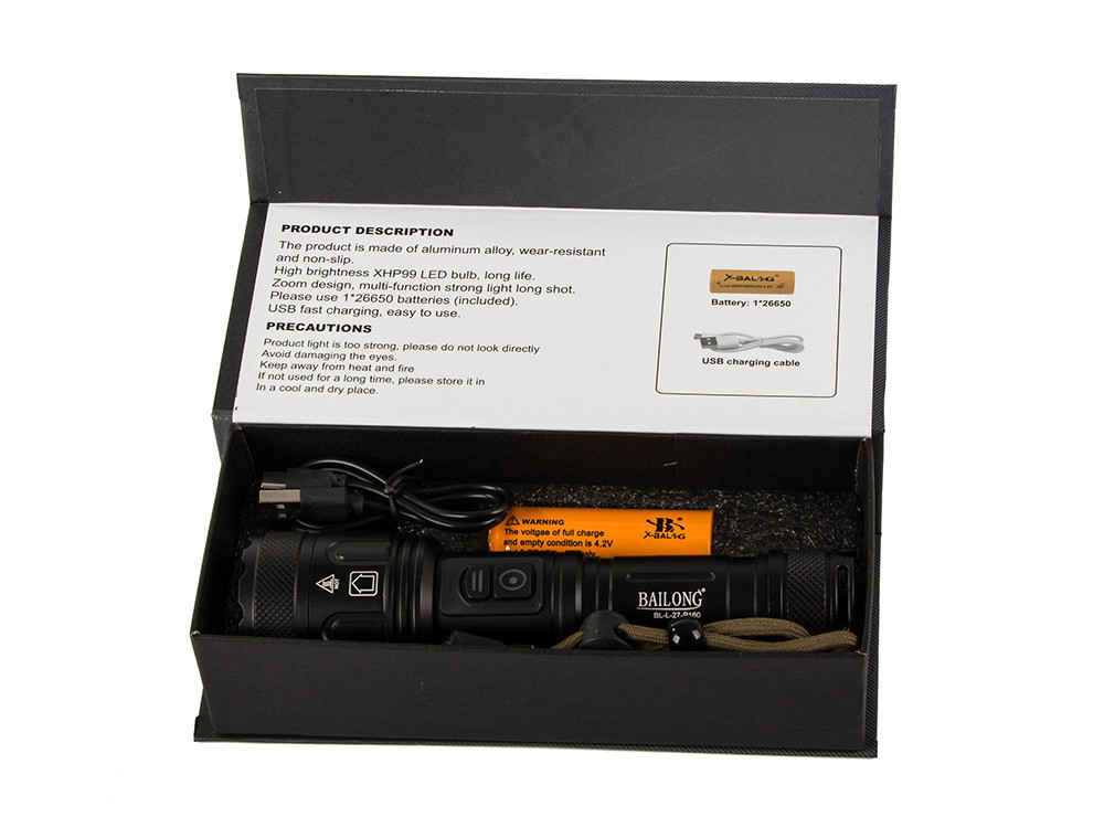A Bailong® L-27 típusú katonai zseblámpát taktikai használatra tervezték. Használhatják egyenruhások, katonaság, vadászok, természetkedvelők vagy otthoni használatra.