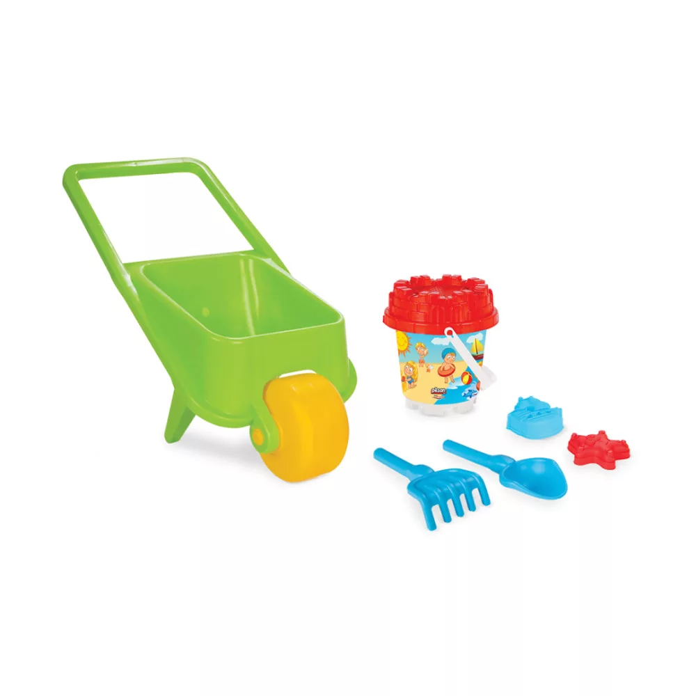 Talicska homokozótartozékokkal 5 db Pilsan A homokozóhoz nélkülözhetetlen, egy talicska kellékkészlettel, melynek segítségével a homokozóban való szórakozás soha nem ér véget. Az élénk színekben pompázó készlet felkelti a gyerekek figyelmét, a kiegészítők sokfélesége pedig nem hagyja unatkozni. A talicska szétszerelt elemekből áll, és szétszerelés után kis helyet foglal. Termékjellemzők: Használati életkor 18 hónap felett 5 darab Több gyerek játszhat.Alkalmas parkokban, kertekben és strandokon való játékra