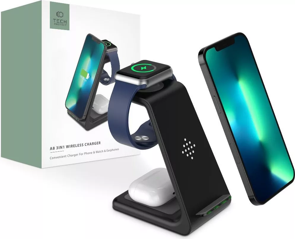 A Tech-Protect márka vezeték nélküli töltőállomása gyors és biztonságos módja annak, hogy akár három különböző eszköz energiáját is feltöltse.