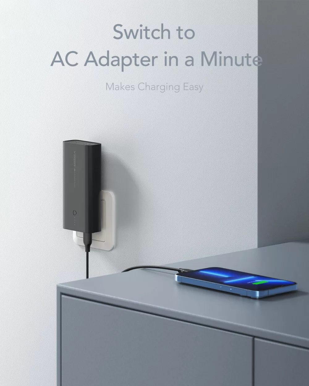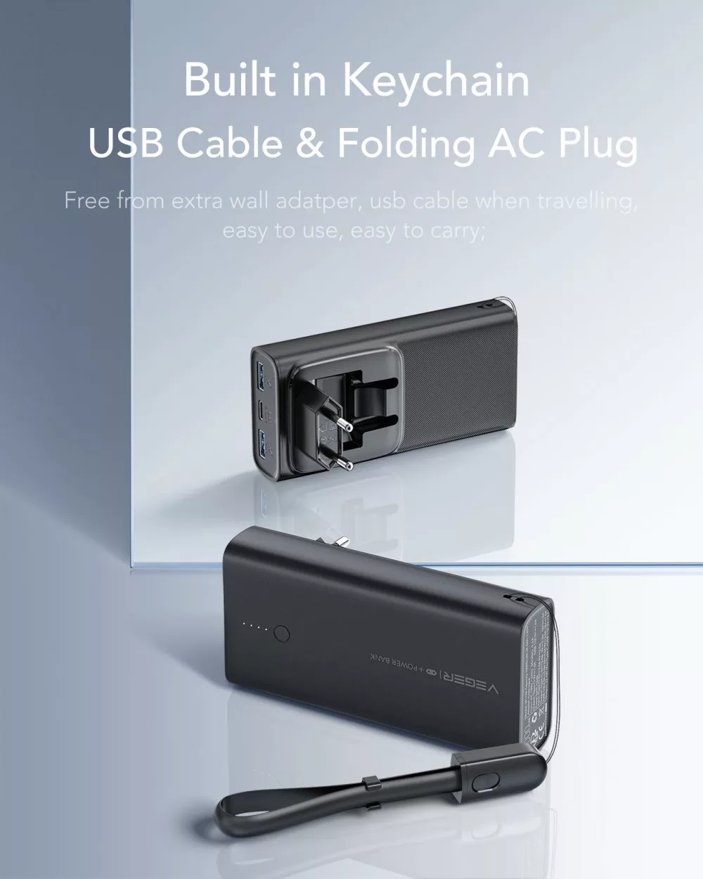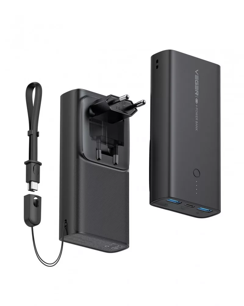 - Ideális Utazáshoz: A VEGER ACE100 minimalista, karcsú kialakítása és könnyű súlya lehetővé teszi, hogy mindenhová magával vigye. A 4 LED-es kijelző mindig tájékoztatja Önt a power bank töltöttségi szintjéről. A mellékelt USB-C kábel nyakpánttal könnyű tárolást biztosít.