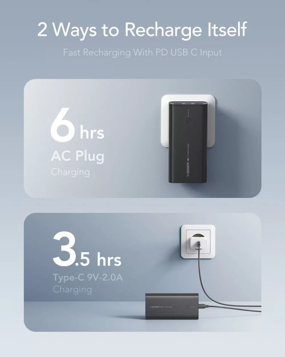 Tapasztalja meg a kényelmes töltést a VEGER ACE100 Power Bank segítségével. Az értékelt lítium-polimer akkumulátor lassabb lemerülést biztosít, így mindig készen áll, amikor szüksége van rá. A 10,000mAh kapacitás lehetővé teszi, hogy többször is feltölthesse telefonját, így sosem marad energia nélkül az útközben.