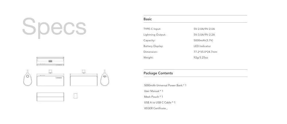 A kompakt Veger PlugOn Power Bank beépített Lightning csatlakozóval és 5000 mAh kapacitással garantálja a gyors töltést bármikor és bárhol. Kompatibilis az Apple készülékeivel