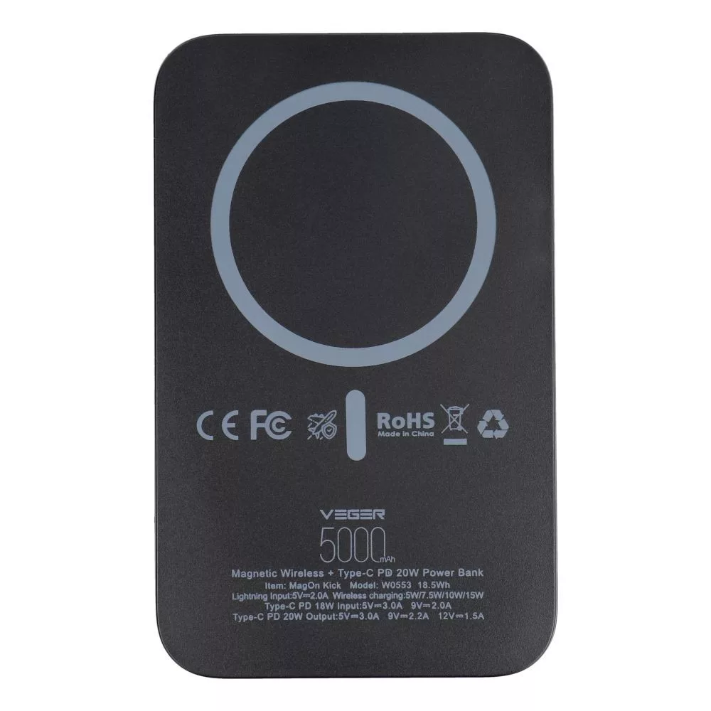 Az 5 000 mAh kapacitású Veger MagOn Kick power bank garantálja a gyors töltést bárhol és bármikor.