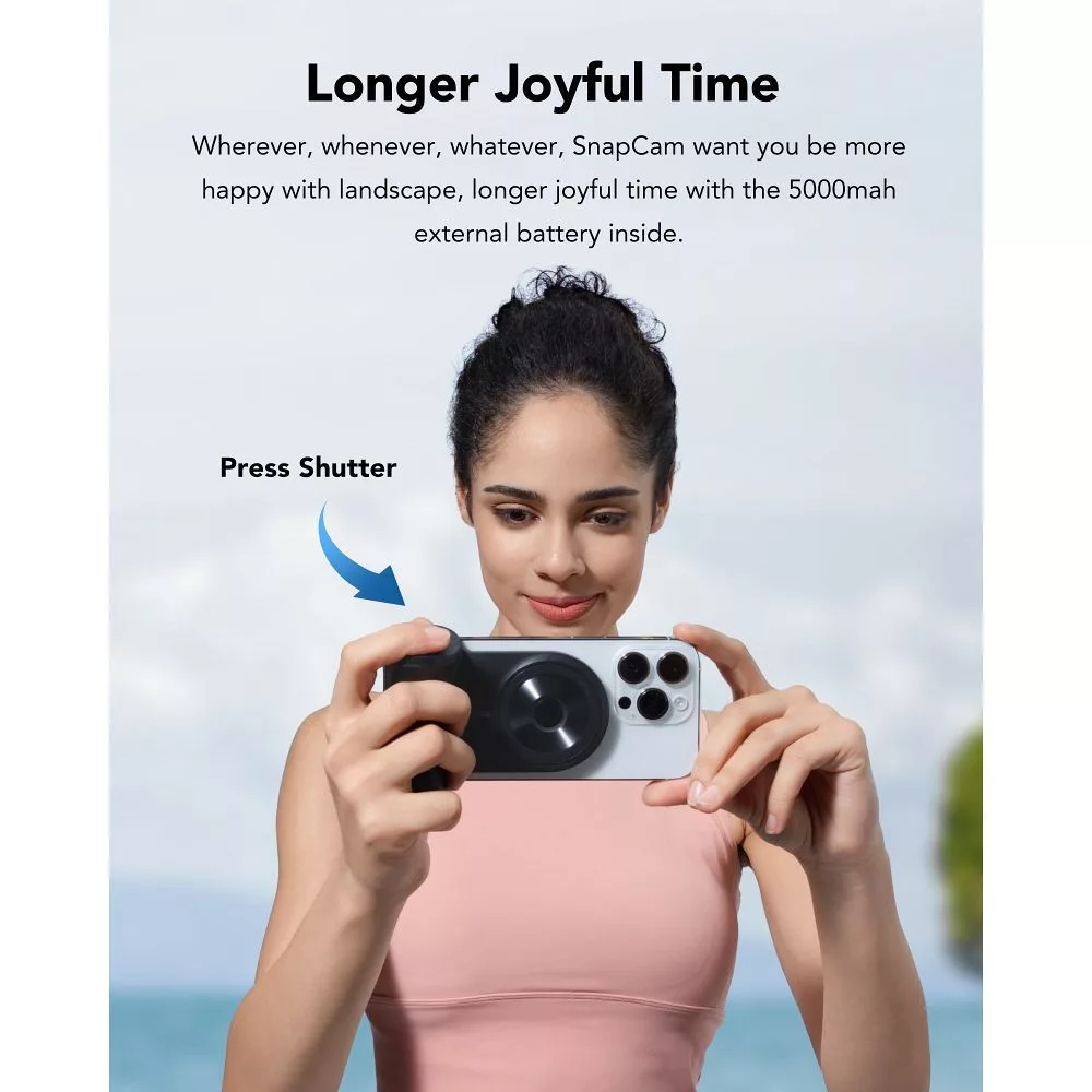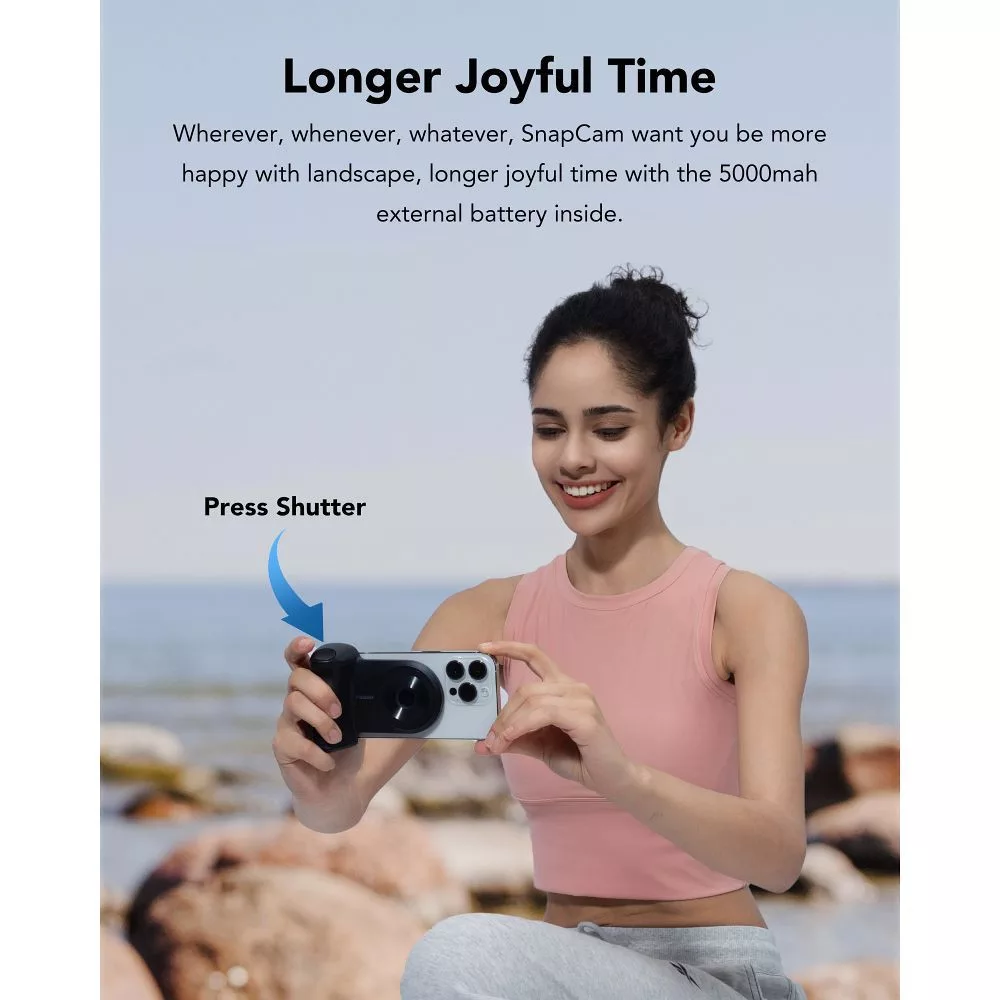 A tartozék fényképezőgép-kioldógombbal ellátott markolatfunkcióval rendelkezik, így utazás közben is kényelmesen készíthetünk fotókat, beleértve a szelfiket is, a beépített Bluetooth-vezérlő pedig a fényképezéshez tökéletes megoldást jelent az önarcképek szerelmeseinek. Emellett javítja az okostelefon fogását és segít stabilizálni a felvételt. Hosszú fotózásokhoz is tökéletes lesz, amikor a telefon további energiaforrást igényel.