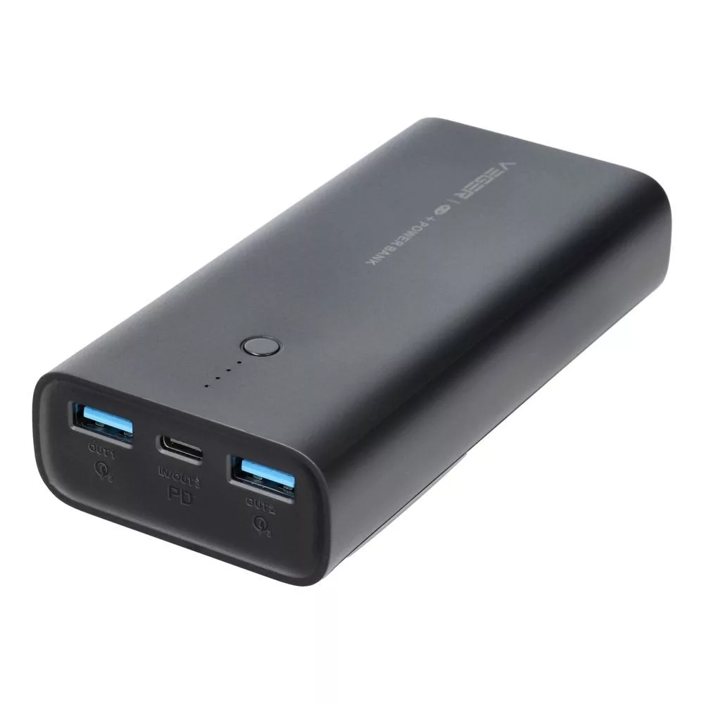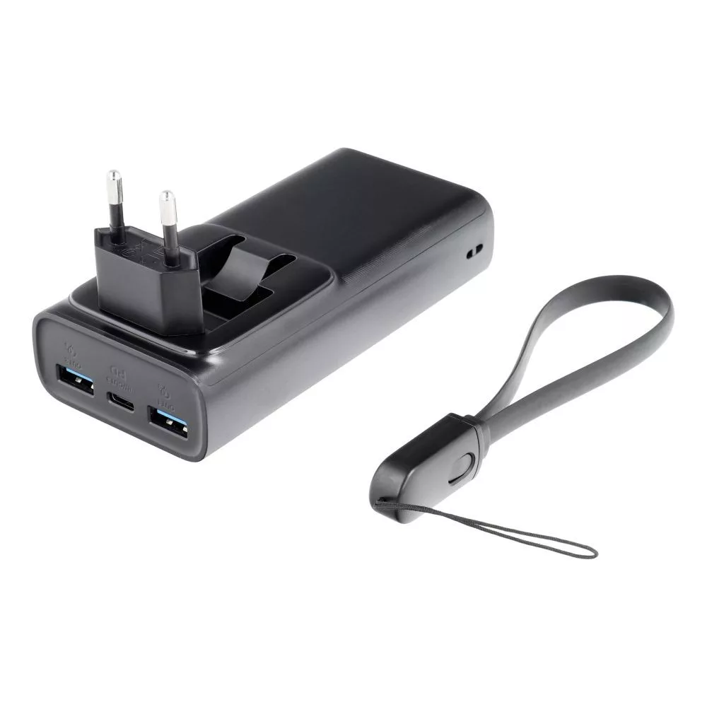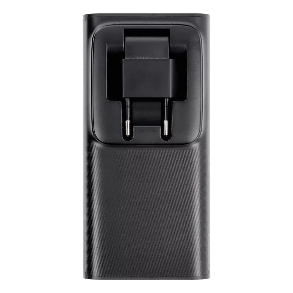 A 10 000 mAh kapacitású Veger ACE100 power bank garantálja a gyors töltést bárhol és bármikor. Összecsukható EU AC csatlakozóval rendelkezik. Kényelmes töltésA piacon elismert lítium-polimer akkumulátor használata garantálja a power bank lassabb lemerülését. A 10 000 mAh kapacitás lehetővé teszi, hogy többször is feltöltse a telefon energiáját, így hasznos lesz útközben, amikor nincs állandó hozzáférés a konnektorokhoz. Több , egyidejűleg 3 porttal rendelkező eszköz , köztük az USB -C és a 2x USB , támogatja a Power Delivery (20 W) és a Quick Charge 3.0 gyorstöltési technológiát, és lehetővé teszi három eszköz egyidejű töltését, például okostelefont, táblagépet, kézi konzolt vagy TWS fejhallgatót . Az USB -C-nek köszönhetően könnyedén csatlakoztathatja a piacon kapható legújabb berendezéseket. 2 töltési módTöltés a beépített EU AC csatlakozóval 6 óra alatt vagy a gyorstöltő USB -C porton keresztül 3,5 óra alatt. Vigye bárhová, ahol szüksége van ráA minimalista, karcsú kialakítás és a kis súly alkalmassá teszi a power bankot utazás közbeni használatra, a 4 LED-es kijelző pedig tájékoztat a készülék töltöttségi szintjéről. Tartalmaz egy USB -C kábelt zsinór formájában a könnyű tárolás érdekében. Műszaki adatok:Kapacitás: 10 000 mAh (38,5 Wh)Akkumulátor feszültség: 3,85 VTeljesítmény: 20 WAnyag: műanyagPortok: 2x USB -A, USB -CKábel: USB -A – USB -CNettó tömeg: 218 gBruttó tömeg: 282 gTermékméretei: 0 × 1 × 1 × 5 cs.28 × 3,5 cmTámogatja a gyorstöltési technológiákat: Power Delivery (20 W) és Quick Charge 3.0