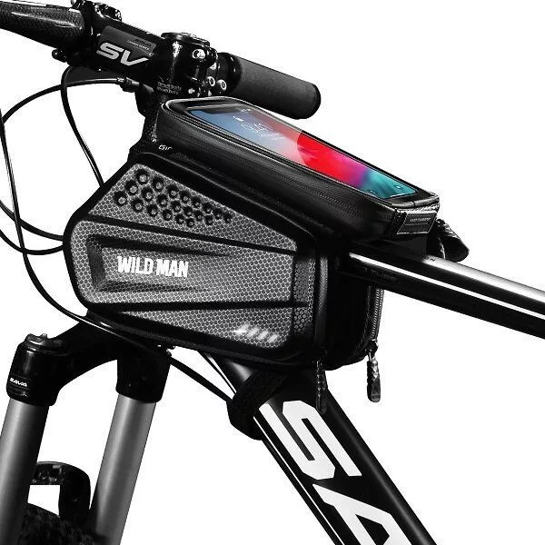 A WILDMAN kerékpár váztáska egy funkcionális táska okostelefonnak helyet adó hellyel, amely hasznos lesz bármilyen kerékpáros túrán. Lehetővé teszi, hogy tárold a legszükségesebb dolgaidat, és egyszerre használd a telefonodat – tökéletes navigációhoz vagy zenehallgatáshoz útközben. Az ES6 erős tépőzáras pántokkal rögzíthető a vázhoz , így biztosítva a stabilitást még nehezebb terepen is. Az átlátszó érintőablaknak köszönhetően a 4-7 hüvelykes telefonodat anélkül kezelheted, hogy kivennéd a tokból. A táska 1,2 literes belsejében kulcsok, pénztárca, belső gumi vagy akár egy külső akkumulátor is elfér, míg a merev és vízálló EVA + PU konstrukció hatékonyan védi a tartalmat a nedvességtől és a szennyeződésektől. Specifikáció:Űrtartalom: 1,2 lTelefonkompatibilitás : 4”–7”Záródás: cipzárRögzítés: tépőzáras pántok (a kerethez)Anyag: vízálló EVA + PUMéretek: kb. 22 × 11 × 10 cmTömeg: kb. 140 g