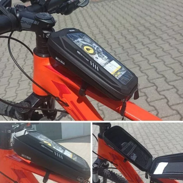 A WILDMAN X3 kormánytáska egy ultrakompakt táska okostelefon-tárolóhellyel, amely tökéletes rövid városi utakra és napi ingázásra. Gyors hozzáférést biztosít a telefonodhoz és a kéznél tartani kívánt alapvető dolgokhoz. Az X3 modell átlátszó, érintésérzékeny ablakkal van felszerelve , amely lehetővé teszi a 4-7 hüvelyk átlójú okostelefon kényelmes kezelését anélkül, hogy kivennéd a tokból. A 0,5 literes rekeszben olyan alapvető kiegészítők tárolhatók, mint a kulcsok, kártya, energiazselék vagy fejhallgató. Az EVA + PU anyagból készült vízálló és merev konstrukció hatékonyan védi a tartalmat az esőtől, a portól és a mechanikai sérülésektől. A tépőzáras rögzítés lehetővé teszi a gyors és stabil rögzítést a kerékpár kormányához. Specifikációk:Űrtartalom: 0,5 lTelefonkompatibilitás: 4”–7”Záródás : cipzárRögzítés: Tépőzáras pántok (kerékpár kormányra)Anyag: vízálló EVA + PUMéretek: kb. 18 × 9 × 7 cmTömeg: kb. 100 g