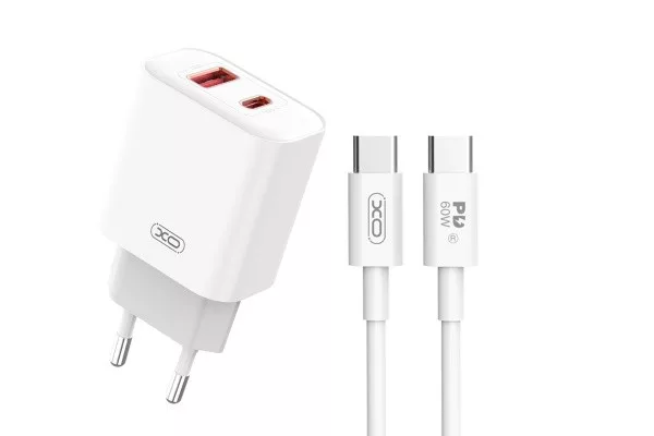 XO CE12 DUPLA HÁLÓZATI TÖLTŐVÉG (USB - TYPE-C) 20W USB TYPE-C/TYPE-C KÁBELLEL FEHÉR