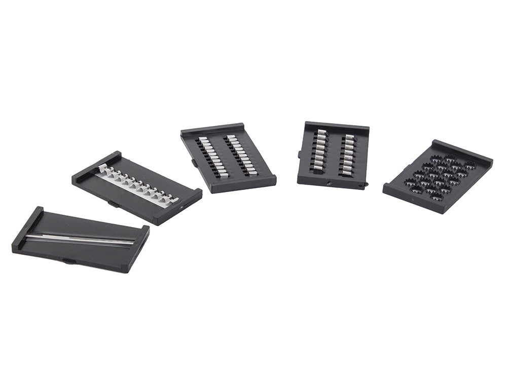 A készlet öt cserélhető pengét, egy rögzítőfogantyút és egy hámozót tartalmaz . Minden penge rozsdamentes acélból készült. A pengék cseréje nagyon egyszerű és gyors.