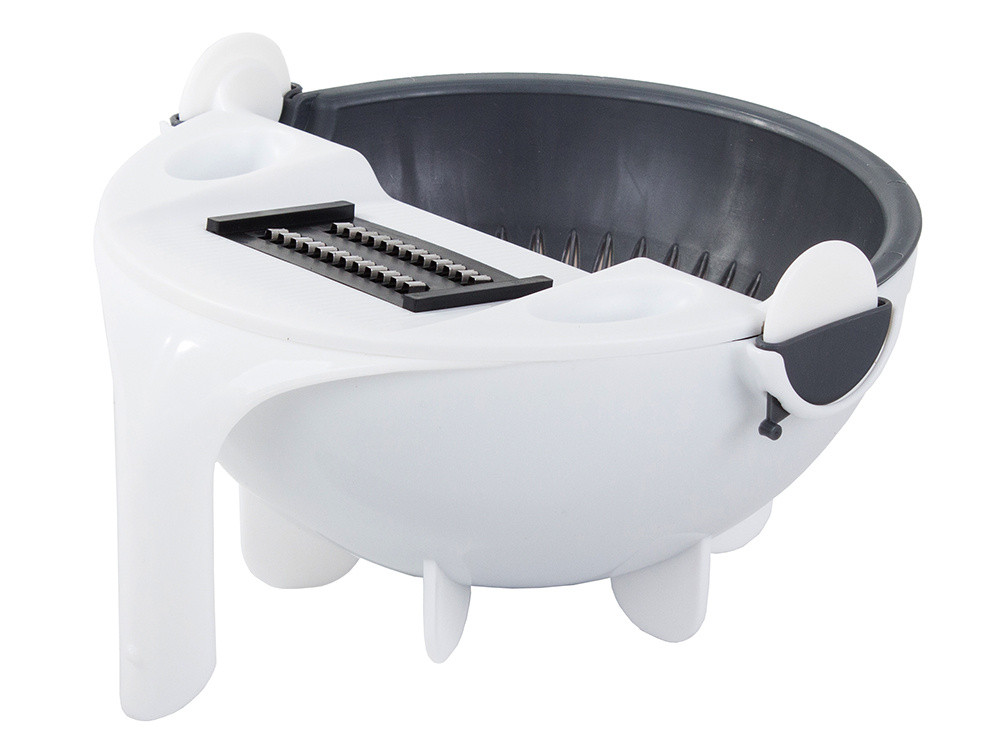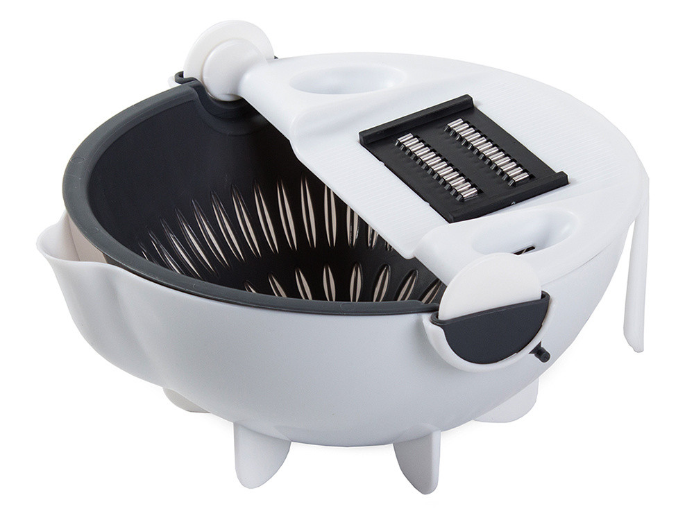Multifunkcionális forgó zöldségszeletelő készlet 3 az 1-ben Reszelőként , szűrőként és tálként is szolgálhat. A reszelő tökéletesen vágja és reszeli a zöldségeket/gyümölcsöket egy finom salátához. A forgó csepegtetővel felszerelve a készlet megkönnyíti a munkát, mivel a zöldségekből a felesleges vizet azonnal lecsepegtethetjük szeletelés után. A tálban elkészíthetjük kedvenc salátánkat vagy más ételünket.