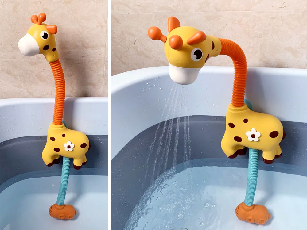 Egy elbűvölő zsiráf formájú vízi játék minden bizonnyal sok fürdést nem szerető gyermeket ösztönöz a fürdésre és a vízben való játékra.