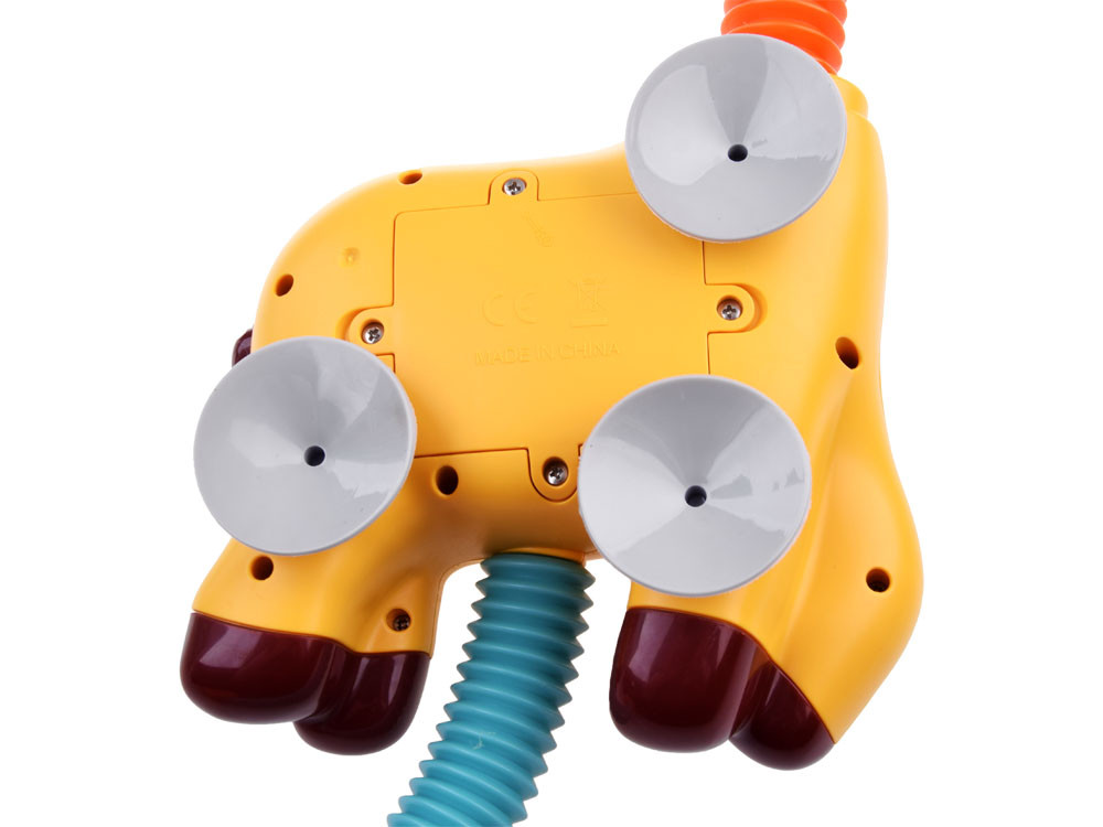 A készlet tapadókorongokkal van felszerelve, amelyeknek köszönhetően a zsiráfot könnyedén rögzíthetjük fürdőszoba csempére, fürdőkádra,
